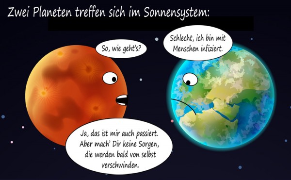 Erster Planet: "Ja, das ist mir auch passiert. Aber mach' Dir keine Sorgen, die werden bald von selbst verschwinden."ARTIKEL TEILEN